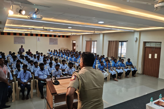 We were honored to have Mr. Manoj, Sub Inspector of Police, and Mr. Sivanesan, Sub Inspector of Police (Technical) from the Cyber Crime Police Station, Perambalur District, as the Resource Persons. They delivered an insightful and highly informative session on emerging cyber threats, digital fraud prevention, safe online practices, and the legal framework surrounding cyber crimes.