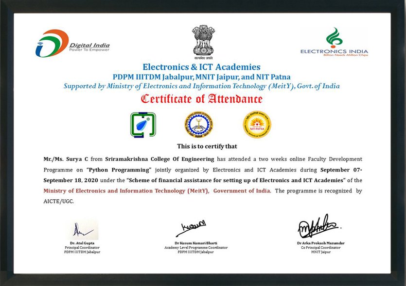 In Sri Ramakrishna College of Engineering, many faculties have undergone various UGC-recognized Open and Distance Learning (ODL) programs such NPTEL, SWAYAM, IGNOU, ATAL to acquire flexible, high-quality education for learners across India.