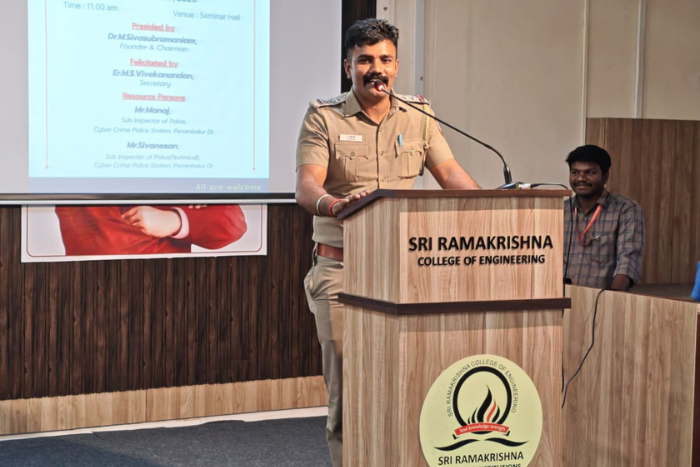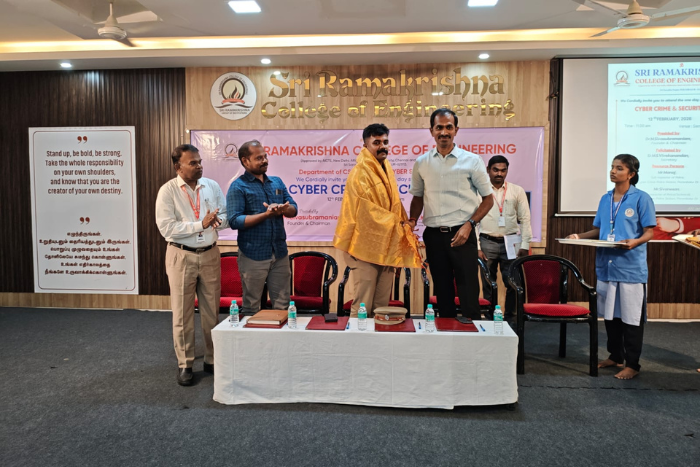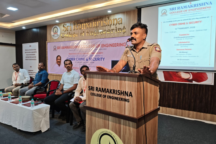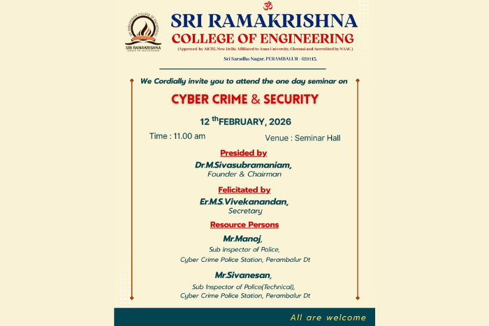 Sri Ramakrishna College of Engineering successfully organized a one-day seminar on “Cyber Crime & Security” on 12th February 2026 at the Seminar Hall.
