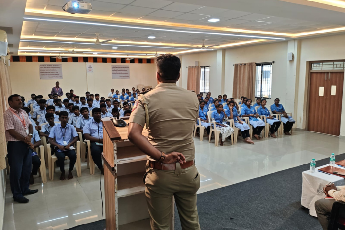 We were honored to have Mr. Manoj, Sub Inspector of Police, and Mr. Sivanesan, Sub Inspector of Police (Technical) from the Cyber Crime Police Station, Perambalur District, as the Resource Persons. They delivered an insightful and highly informative session on emerging cyber threats, digital fraud prevention, safe online practices, and the legal framework surrounding cyber crimes.
