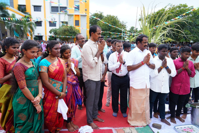 Our honorable Chairman, Sevai Semmal Dr. M. Sivasubramaniam, graciously inaugurated the vibrant Pongal celebrations on 13th January 2026. The festivities commenced with the traditional preparation of Pongal, where students from all departments actively took part, symbolizing unity, gratitude, and joy.